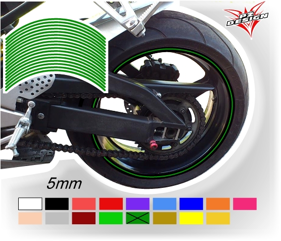 - Tmavě zelené proužky na ráfek motocyklu šířka 5 mm