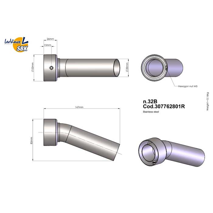 Rozměry: výstup Ø 52 mm | vstup Ø 35mm | délka: 147 mm vhodné pro modely