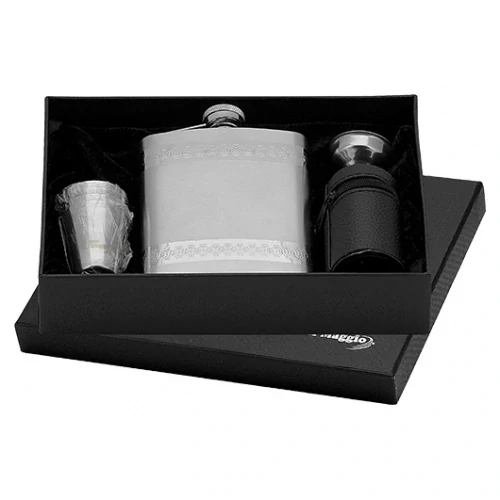 Placatka je dodávána v dárkové krabičce + 4 ks pohárků v cestovním obalu + trychtýřek